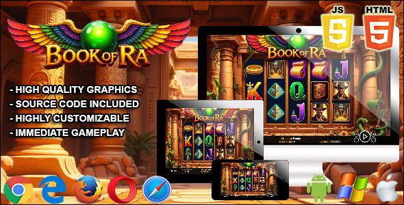 Book of Ra – HTML5 Slot Machine Book of Ra is a HTML5 Slot Machine (Casino game). This game has been developed in PHP / HTML5 / JavaScript and Phaser 3 with the HTML5 Slotbuilder – a no-code tool to...