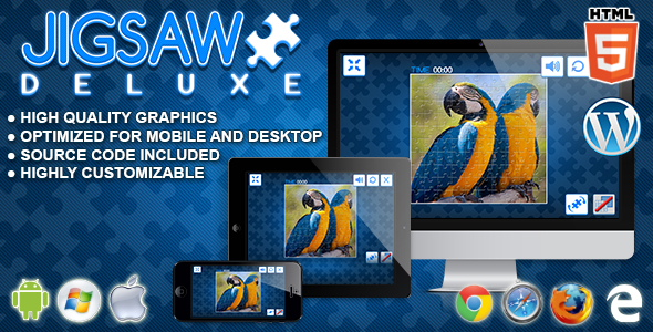 Jigsaw Deluxe Jigsaw is a HTML5 Puzzle game. The puzzle game par excellence. Select your favorite picture and complete the jigsaw in the shortest time possible! Game Features: 4 Game difficulties (16, 36, 64 and 100 pieces) 6 Pictures that...
