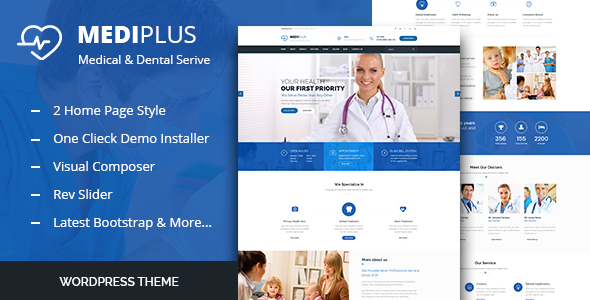 Medi Plus is a WordPress theme for Health and Medical websites. It is a highly suitable template for doctors, dentists, hospitals, health clinics, surgeons and any type of health or medical organization. It has purpose oriented design, responsive layout and...