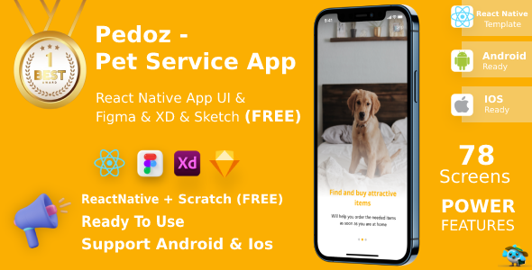 Pet Service App | UI Kit | ReactNative | Figma + XD + Sketch FREE | Life Time Update | Pedoz