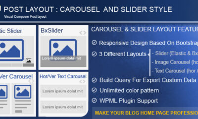 add-ons/ 4 months agoPost Layout: Carousel + Slider for Visual Composer4 Hover Effects Key Features System Requirement : Visual Composer Clean Design Responsive Layout WPML Plugin Support 3 different Layout Carousel...