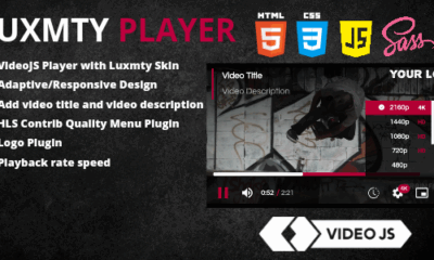 FEATURES Player with Luxmty Skin CSS/SCSS Adaptive/Responsive Design Add title and description to videos Logo Plugin (add your logo) Quality Selector...