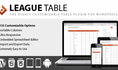 interface-elements/ 3 months agoLeague Table – Table Plugin for WordPressLeague Table is a versatile WordPress plugin that allows you to create beautiful sortable and responsive tables inside your posts, pages,...