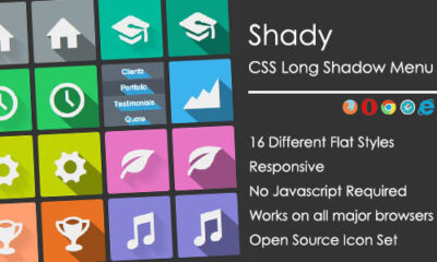css/ 5 months agoLong Shadow MenuShady is a Responsive, flat long shadow CSS menu. Features Responsive design (2 visualizations) Modern, flat design and long shadows 16...