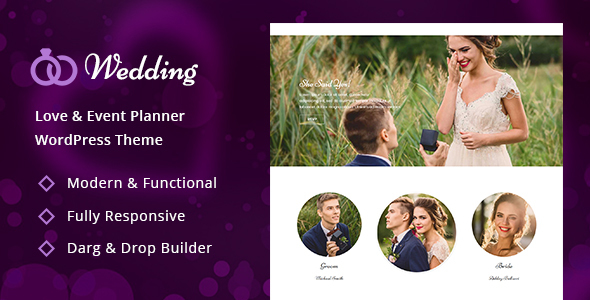 Wedding is Responsive WordPress theme well-suited for wedding planner websites. Modern, elegant and creative theme for wedding and engagement events. Wedding WordPress theme built for photographers, event planners, freelancers and photo lovers. It is a creation for independent people and...